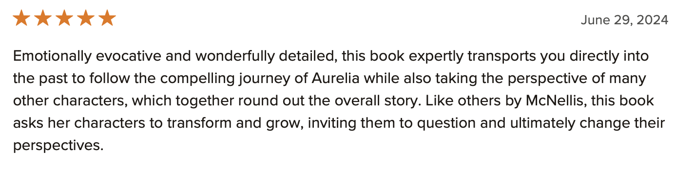 “In a riveting tale of sacrifice and finding one’s identity among the shambles of an old life, author Margaret McNellis brings Aurelia and ancient Rome to life vividly in this thrilling narrative. Readers will cry between smiles and cheer on the protagonists every step of the way. Hold your breath because the battle for Britain—and freedom—is now underway.” - Historical Novel Society